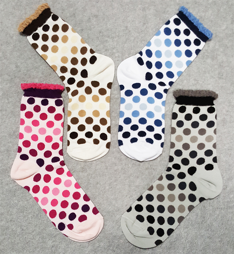 Calzino in caldo cotone elasticizzato con motivo a pois in scala di colore.